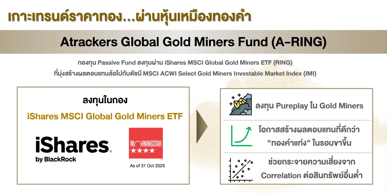 สรุปกองทุนหุ้นเหมืองทอง A-RING ในซีรีส์ ATrackers จาก บลจ. แอสเซท พลัส ที่มีคอนเซ็ปต์การลงทุนแบบ Passive Global Thematic ขุดความมั่งคั่งไปกับธีมเหมืองทอง Pure-play Gold Miners กองทุนแรกในไทย