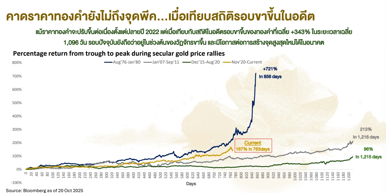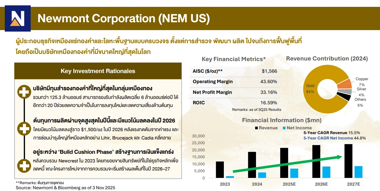 • ได้ลงทุนในหุ้น Pure-play Gold Miners ซึ่งสถิติย้อนหลังในอดีตช่วงรอบทองคำขาขึ้น พบว่าราคาหุ้นเหมืองทองมักปรับตัวขึ้นเฉลี่ย 2 เท่าของราคาทองคำแท่ง