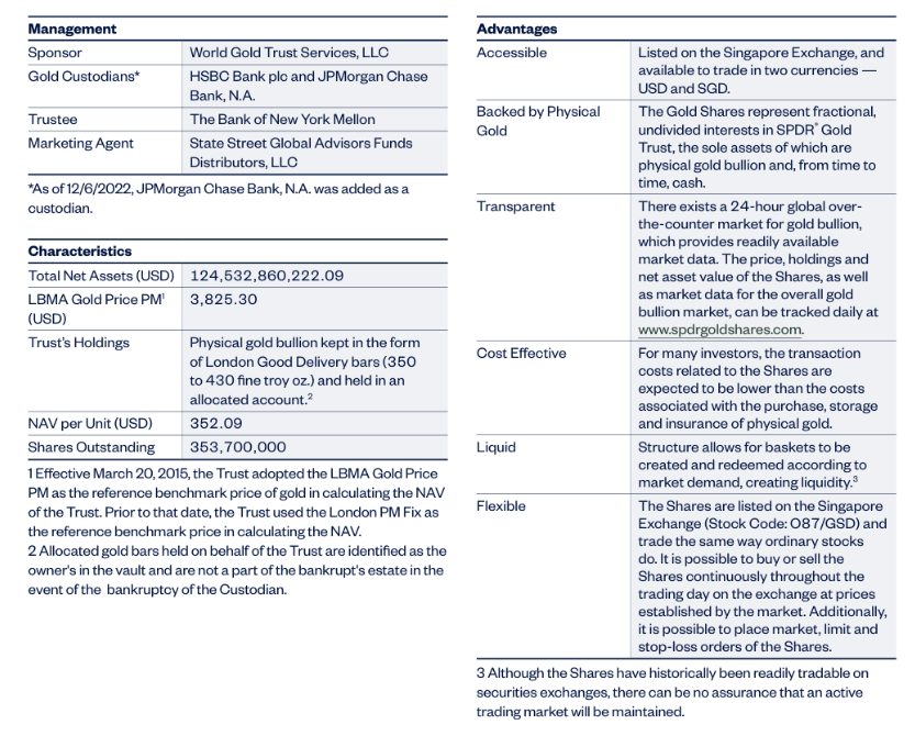 ข้อมูลการลงทุนของ SPDR Gold Trust (กองทุนหลัก)