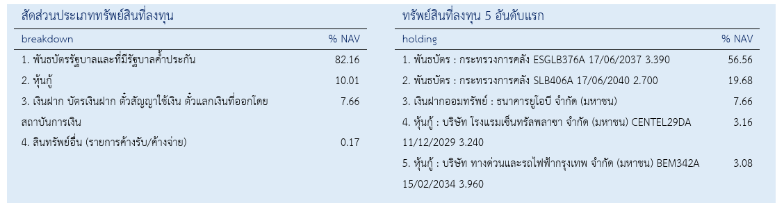 • สินทรัพย์ที่ลงทุน: ตราสารหนี้หลายประเภททั่วโลก เช่น ตราสารหนี้ภาครัฐ, ตราสารหนี้สถาบันการเงิน หรือตราสารหนี้ภาคเอกชน
