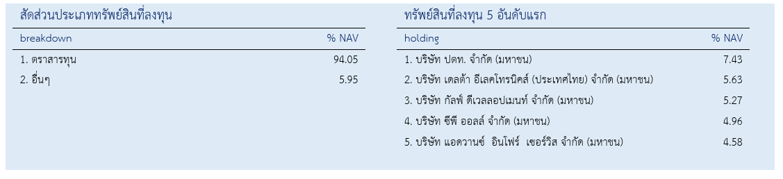 คำเตือน: Portfolio และสัดส่วนการลงทุนอาจเปลี่ยนแปลงได้ โดยขึ้นอยู่กับสภาวะตลาดและดุลยพินิจของผู้จัดการกองทุนหลัก