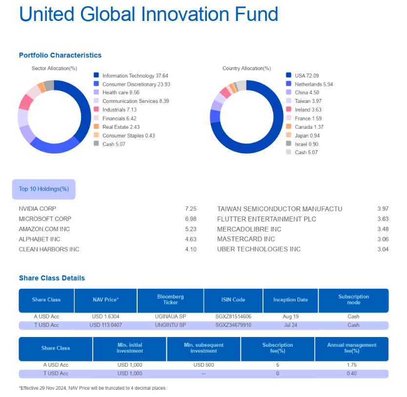 ข้อมูลการลงทุนของ United Global Innovation Fund (Class A USD Acc) (กองทุนหลัก)