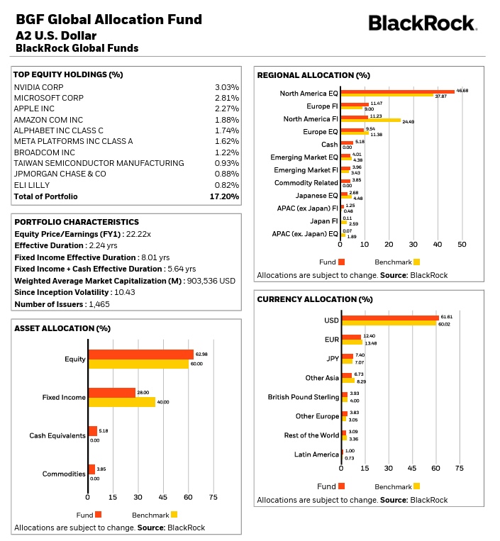 ข้อมูลการลงทุนของ BGF Global Allocation Fund (Class A) (กองทุนหลัก)