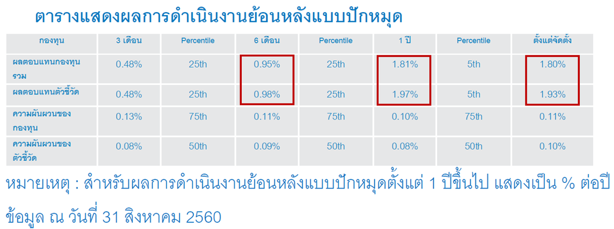 ที่มา : หนังสือชี้ชวนส่วนสรุปข้อมูลสำคัญของกองทุน TMBTM ณ วันที่ 31 ส.ค. 2560