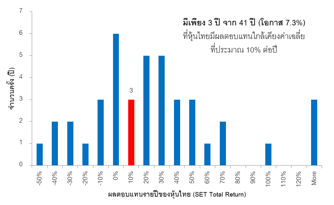 ที่มา : ประมวลจากผลตอบแทนรายปี (รวมเงินปันผล) นับตั้งแต่จัดตั้งดัชนีตลาดหลักทรัพย์แห่งประเทศไทย