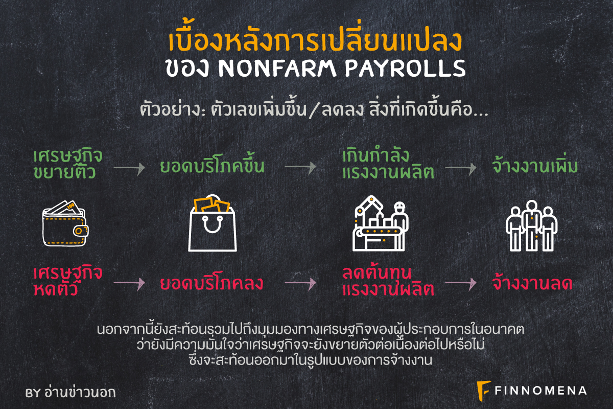 แต่ในกรณีตรงข้ามหากตัวเลขดังกล่าวติดลบ นั่นหมายถึงการที่เศรษฐกิจชะลอตัว การบริโภคน้อยลง และมุมมองต่อเศรษฐกิจที่ไม่ดีในอนาคต ทำให้ตัวเลข Nonfarm Payrolls จึงเป็นดัชนีชี้นำทางเศรษฐกิจที่นักลงทุนทั่วโลกให้ความสนใจอย่างยิ่ง เพราะเป็นอีกดัชนีสำคัญที่จะบ่งชี้ถึงเศรษฐกิจในอนาคต ผ่านทางภาคธุรกิจที่มีการดำเนินงานจริง