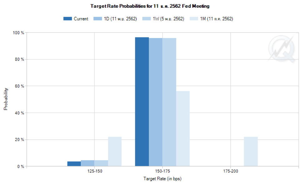 เมื่อประกอบกับท่าทีของธนาคารกลางสหรัฐฯ ที่เปลี่ยนท่าทีด้านอัตราดอกเบี้ยนโยบายอีกครั้ง ด้วยการส่งสัญญาณว่า การปรับลดอัตราดอกเบี้ยครั้งล่าสุด อาจเป็นครั้งสุดท้ายของปีนี้ ยิ่งเป็นการยืนยันถึงแรงการฟื้นตัวทางเศรษฐกิจที่อาจเกิดขึ้นได้ในอนาคตข้างหน้า ส่งผลไปยังความคาดหวังการลดอัตราดอกเบี้ยของธนาคารกลางสหรัฐฯ และทั่วโลกลดลง