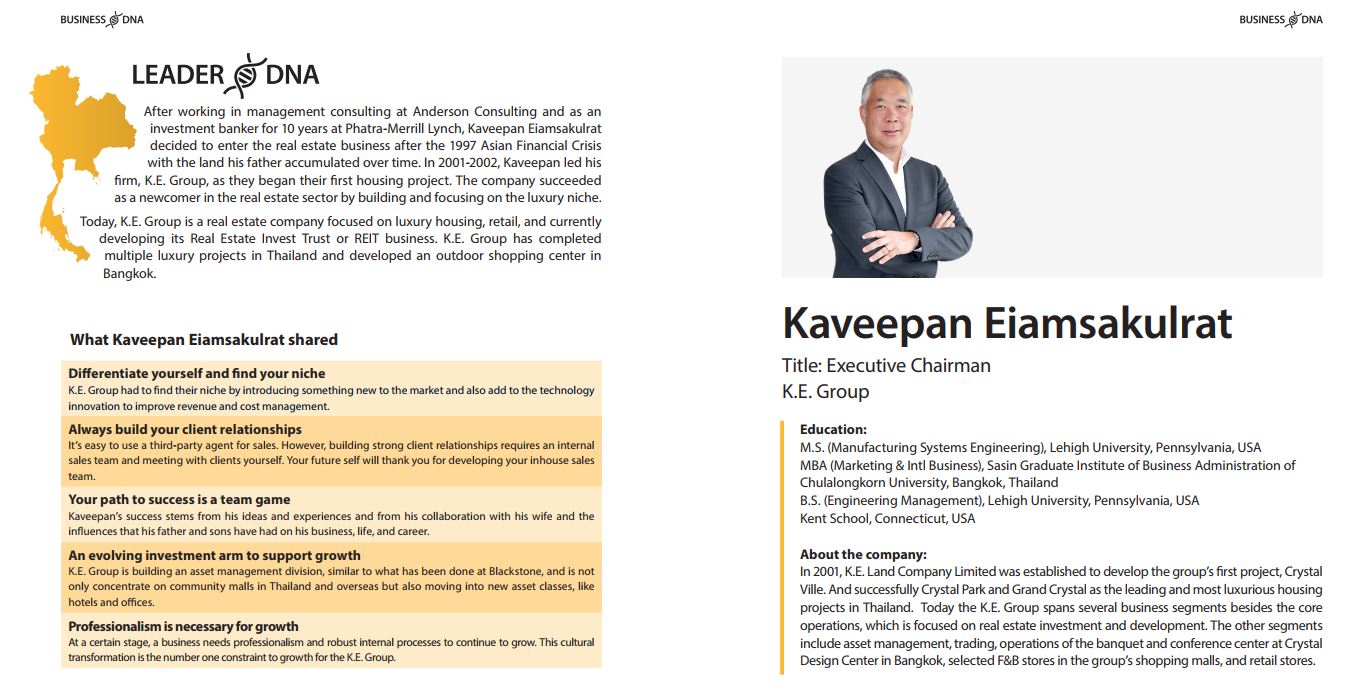 เรียนรู้เกี่ยวกับคุณกวีพันธ์และ K.E. Group ได้ในบทสัมภาษณ์ฉบับเต็ม (ภาษาอังกฤษ)