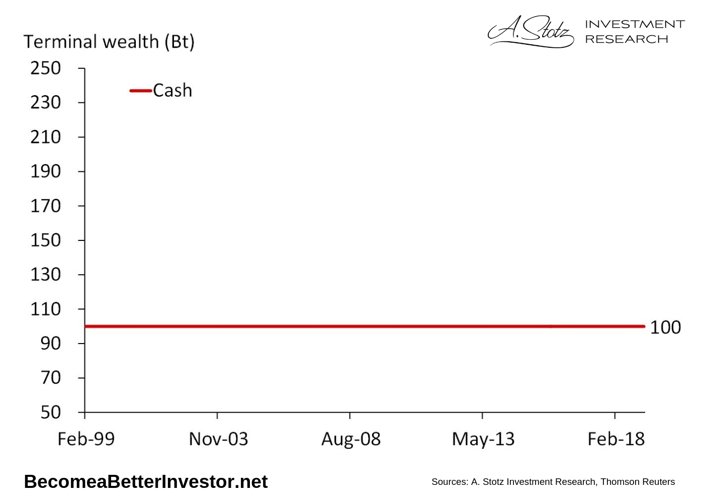 การเก็บเงินสด หมายความว่าเรายอมที่จะเสียมูลค่าที่แท้จริงของมัน เราอาจจะรู้สึกปลอดภัยเพราะมูลค่าไม่ได้ขึ้นลง แต่เรากำลังสูญเสียมูลค่าที่แท้จริงเรื่อย ๆ
