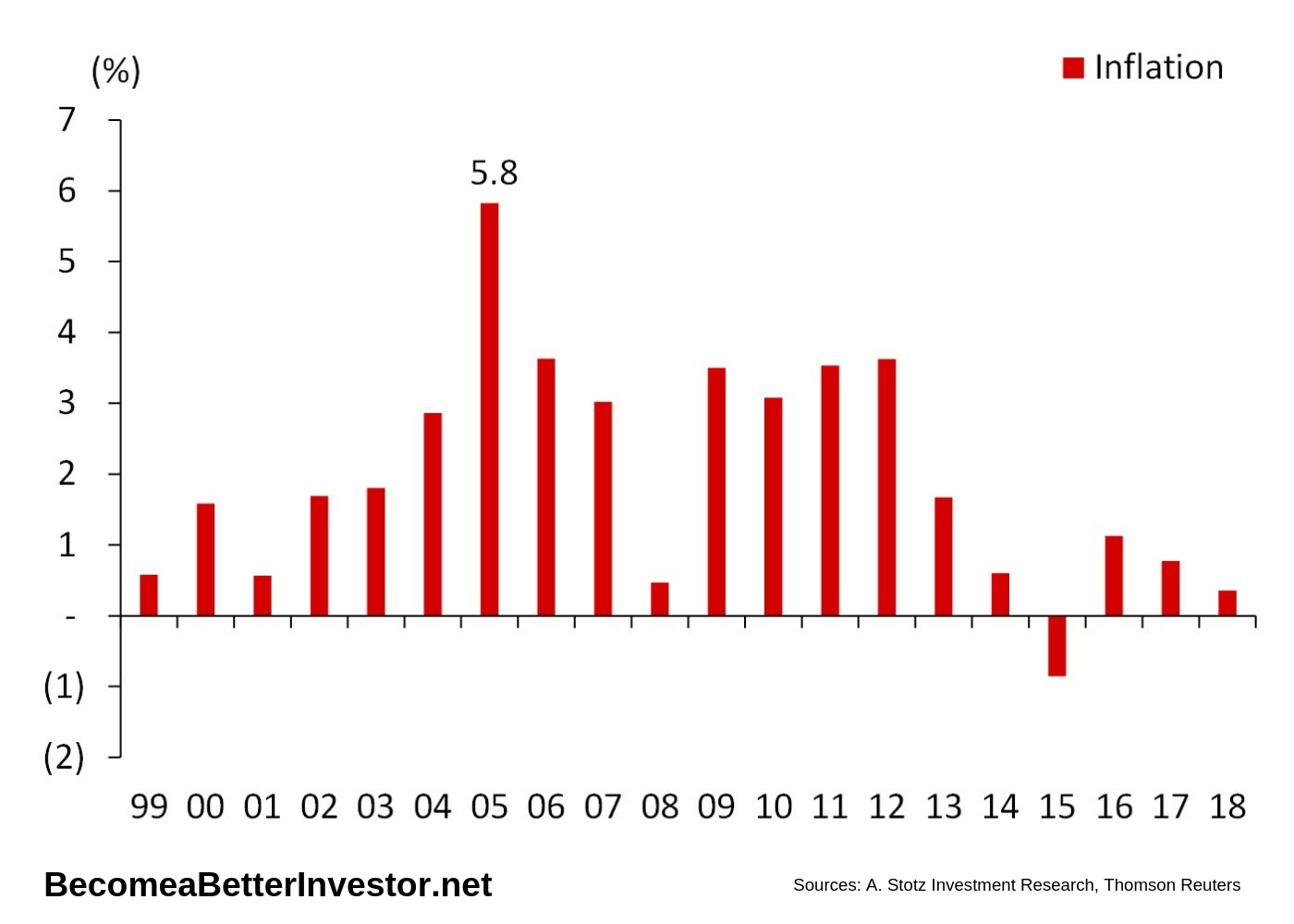 แม้ว่าอัตราเงินเฟ้อในแต่ละปีจะมีความแตกต่างกัน แต่เราจะเห็นได้ว่าเงินเฟ้อเกิดขึ้นโดยธรรมชาติอยู่แล้วในระบบเศรษฐกิจ มีเพียงปี 2015 เท่านั้นที่เงินเฟ้อของไทยติดลบ หรืออาจจะเรียกได้ว่าเงินฝืดประมาณ 1% หมายความว่า ถ้าเรามีเงิน 100 บาทในปลายปี 2014 เราจะสามารถใช้เงิน 100 บาทนี้ซื้อของมูลค่า 101 ได้ในปลายปี 2015 นั่นเอง