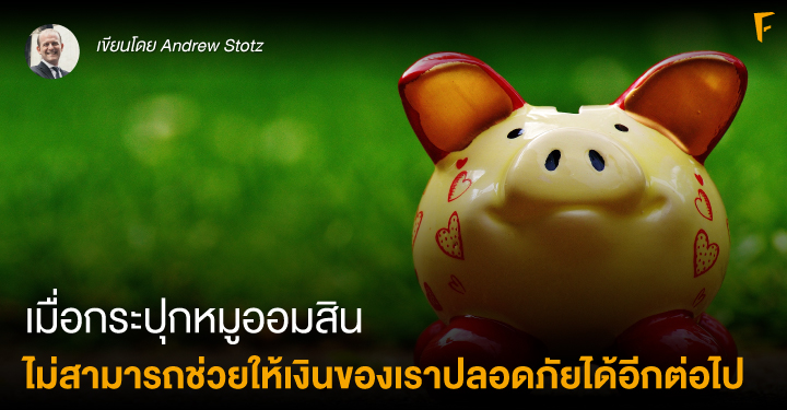 จากภาพข้างต้น เงินในกระปุกหมูออมสินนั้นจะลดมูลค่าจากเงินเฟ้อที่เกิดขึ้น เงิน 100 บาทในกระปุกเมื่อปี 1999 จะไม่เท่ากับเงิน 100 บาทวันนี้ มันมีมูลค่าเพียงแค่ 67 บาทเท่านั้น ในเชิงอำนาจการซื้อ เงินที่เราได้มาอย่างยากเย็นสูญเสียมูลค่าตัวเองไปกว่า 1 ใน 3 เมื่อผ่านไป 20 ปี