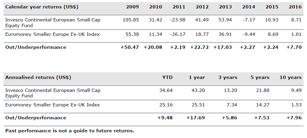 เป็นกองที่ลงทุนในหุ้นยุโรปขนาดเล็ก โดยมี Euromoney Smaller Europe ex UK. เป็น Benchmark (คล้ายๆ sSET ของบ้านเรา) ก่อตั้งมาตั้งแต่ปี 1993 ถ้านับถึงปัจจุบันก็เป็นเวลา 24 ปี โดยขนาดกองทุนมีมูลค่า 504 ล้านดอลลาร์สหรัฐฯ หรือประมาณ 16,000 ล้านบาท