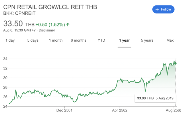 รูปที่ 4: กราฟราคา CPNREIT ในช่วง 1-2 ปีที่ผ่านมา