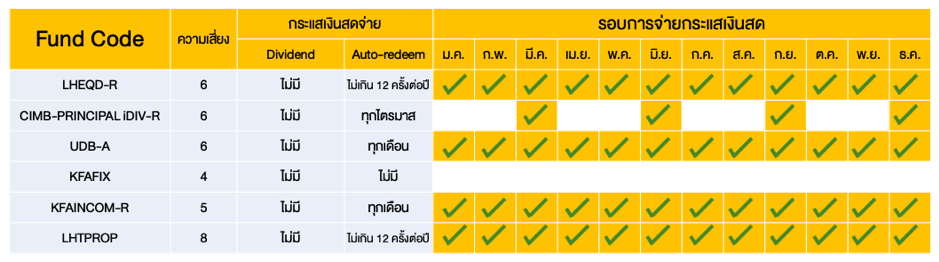 - จ่ายกระแสเงินสดระยะยาวเฉลี่ย 3-5% ทุกปี – โครงสร้างของพอร์ต GIF ก็คือกองทุนภายในทั้ง 6 กอง จากข้อมูลข้างต้นจะเห็นว่า มีกองทุนที่จ่ายกระแสเงินสดทุกเดือนถึง 4 กองทุนด้วยกัน ทำให้มีโอกาสที่จะสร้างกระแสเงินสดได้อย่างต่อเนื่องและมีโอกาสรับผลตอบแทนจากกระแสเงินสดระยะยาวที่ 3-5% ขึ้นไป