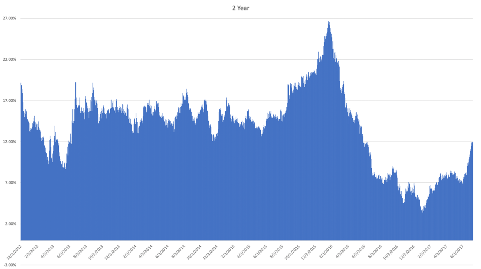 รูปที่ 6: ผลการทำ Rolling Return บนกองทุนที่พอร์ต GIF ลงทุนย้อนหลัง 7 ปี โดยคำนวณอิงจากกองทุนที่ลงทุนจริงในแต่ละช่วงเวลา