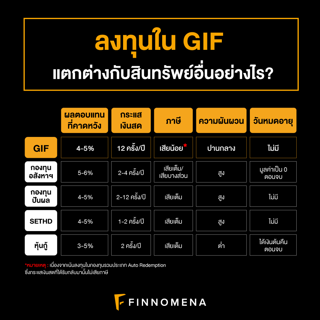 ลงทุนในพอร์ต GIF แตกต่างกับลงทุนในสินทรัพย์ทางการเงินอื่นๆ อย่างไร?