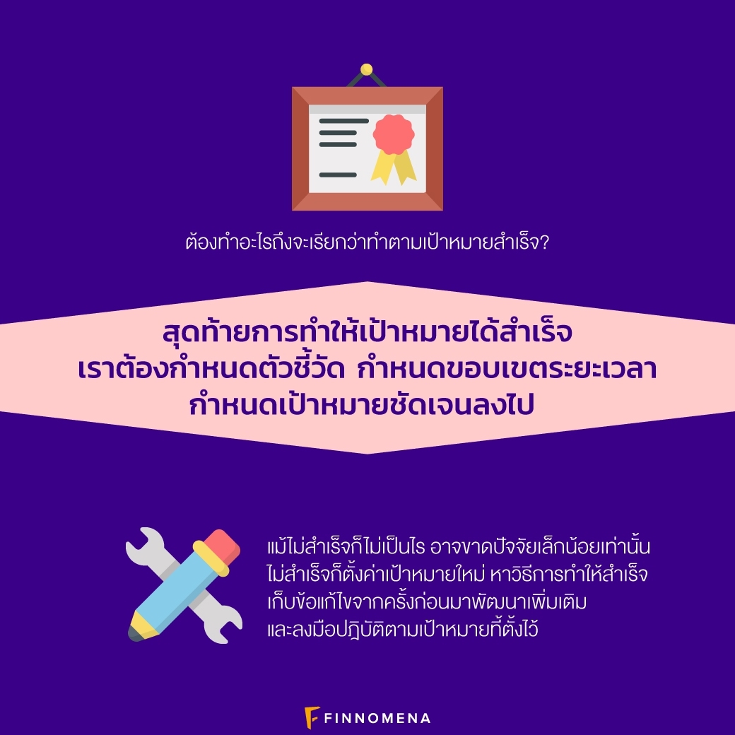 สุดท้ายการทำให้เป้าหมายได้สำเร็จ คุณต้องกำหนดตัวชี้วัด กำหนดขอบเขตระยะเวลา กำหนดเป้าหมายชัดเจนลงไป