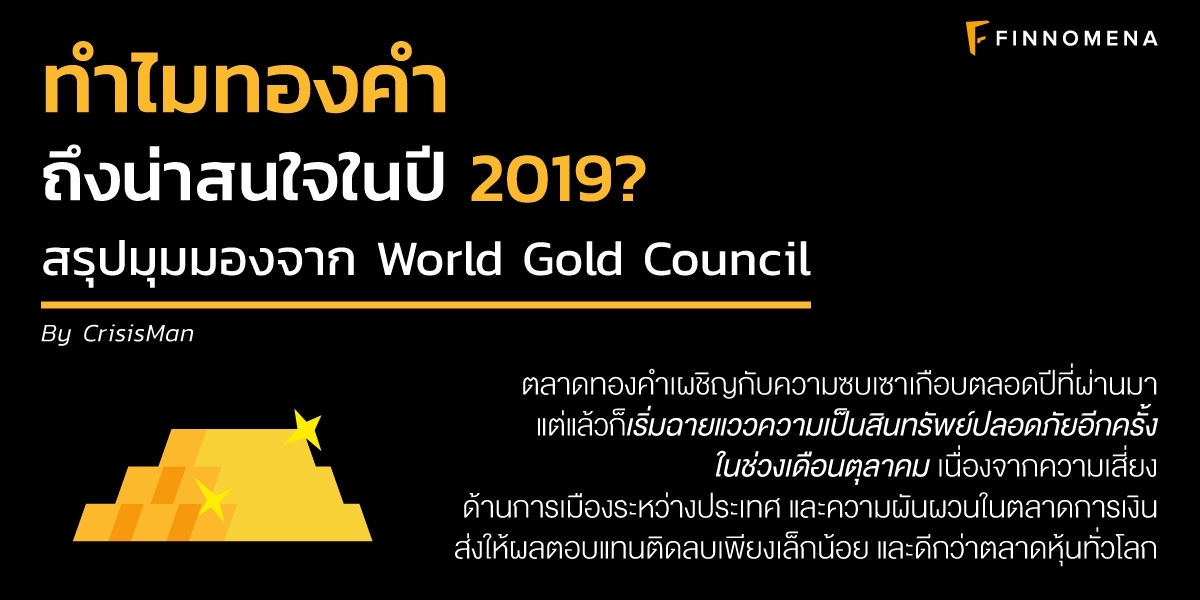 แม้เมื่อปีที่ผ่านมา ตลาดทองคำจะเผชิญกับความซบเซาเกือบตลอดปี แต่แล้วก็เริ่มฉายแววความเป็นสินทรัพย์ปลอดภัยอีกครั้งในช่วงเดือนตุลาคม เนื่องจากความเสี่ยงด้านการเมืองระหว่างประเทศ และความผันผวนในตลาดการเงิน โดยเฉพาะหุ้นในกลุ่มเทคโนโลยีสหรัฐฯ ส่งให้ผลตอบแทนติดลบเพียงเล็กน้อย และดีกว่าตลาดหุ้นทั่วโลก