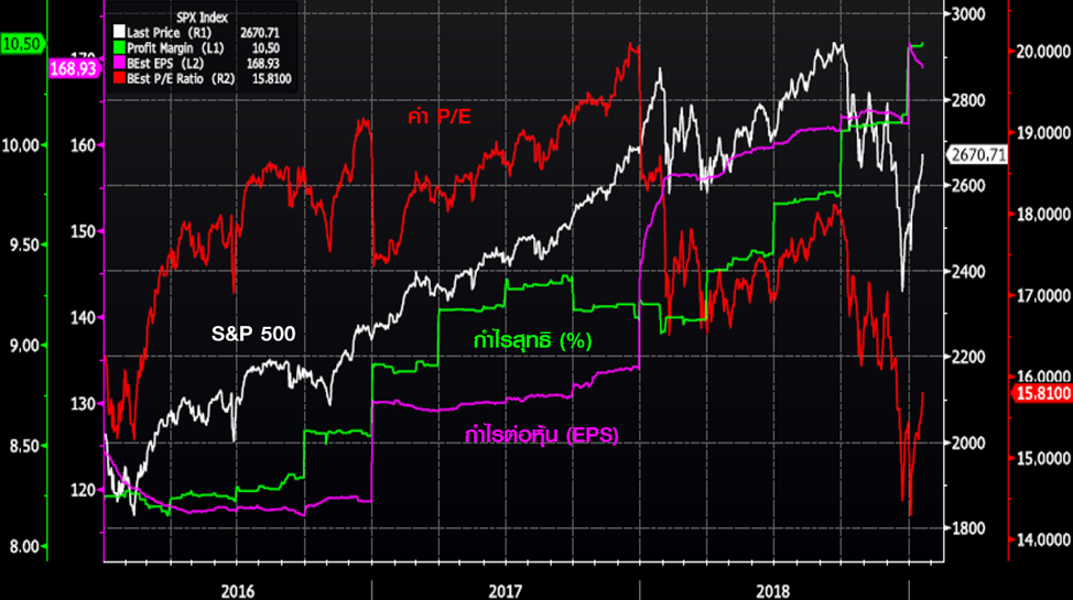รูปที่ 3 ดัชนี S&P500 ค่า P/E และกำไรสุทธิ | ที่มา Bloomberg