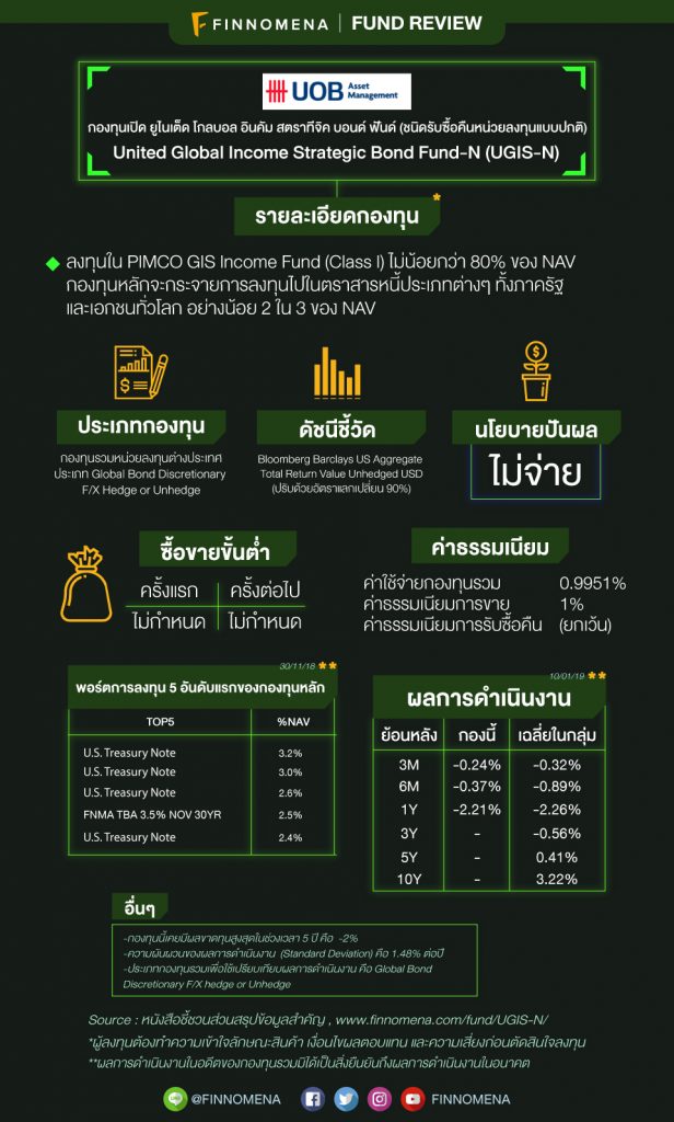 กองทุน UGIS-N หรือกองทุนเปิด ยูไนเต็ด โกลบอล อินคัม สตราทีจิค บอนด์ ฟันด์ ชนิดรับซื้อคืนหน่วยลงทุนแบบปกติ ภายใต้การบริหารโดยบริษัทหลักทรัพย์จัดการกองทุนยูโอบีหรือ UOBAM โดยลงทุนผ่านกองทุน PIMCO GIS Income Fund ที่มีประสบการณ์การลงทุนระดับโลก… แต่จะเข้มข้นเชี่ยวชาญขนาดไหน เราตามไปดูด้วยกันครับ