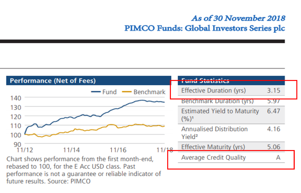 ขณะที่ความกังวลเรื่องการปรับขึ้นดอกเบี้ยของ FED ที่ผมได้เกริ่นไว้ก่อนหน้านี้ ได้ทำให้ล่าสุด Current Yield ของ PIMCO GIS Income Fund ณ สิ้นเดือน พ.ย. 2018 อยู่ที่ 4.10% ซึ่งอยู่ในระดับที่สูงขึ้นพอสมควร ขณะที่อายุเฉลี่ยของตราสารหนี้ในกองทุนอยู่ที่ 3.15 ปี ซึ่งตามหลักการลงทุนในตราสารหนี้นั้น เวลาที่เหมาะเข้าลงทุนคือช่วงเวลาที่การขึ้นดอกเบี้ยใกล้ถึงจุดสูงสุดในแต่ละรอบวัฏจักร การเข้าลงทุนจะมีโอกาสได้รับทั้งดอกเบี้ยรับที่สูง และโอกาสรับกำไรจาก capital gain อย่างไรก็ตามหากเกิดกรณีไม่มีแรงซื้อเข้าตามคาด หรือแม้กระทั่งมีแรงขายในตราสารหนี้สหรัฐฯ ก็ยังมีโอกาสที่จะให้ผลตอบแทนจากดอกเบี้ยรับ