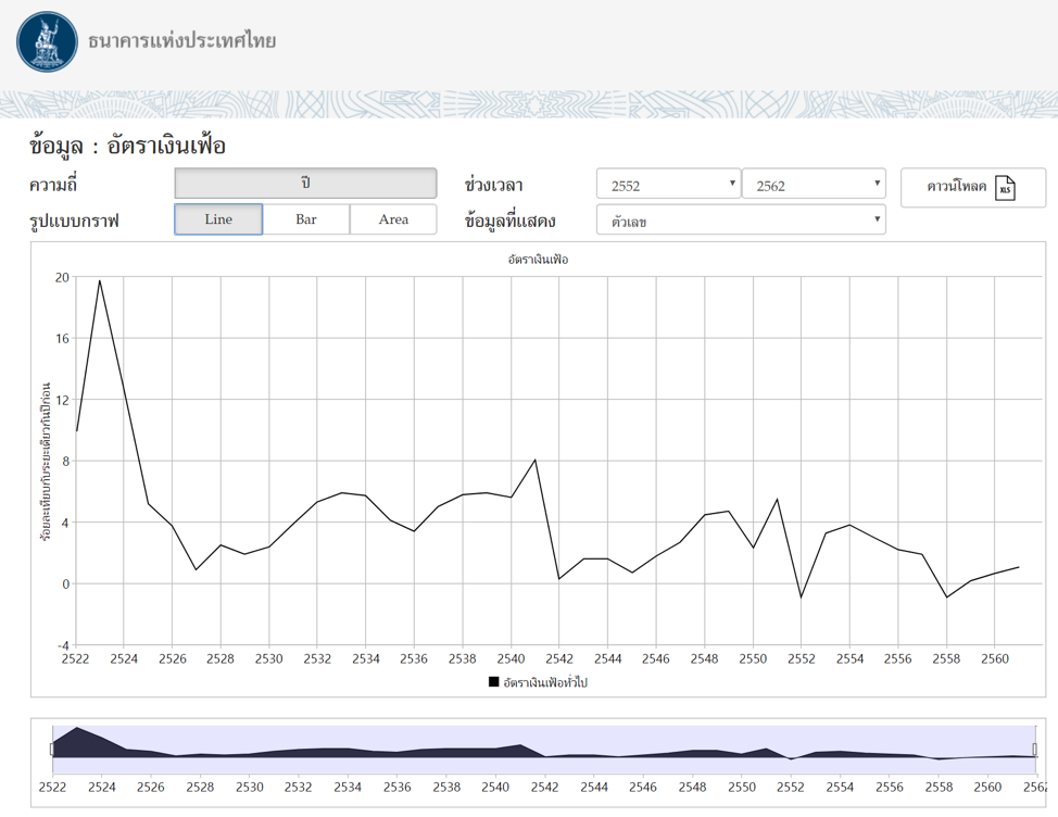 จากข้อมูลอัตราเงินเฟ้อจากเว็บไซต์ธนาคารแห่งประเทศไทย อัตราเงินเฟ้อเฉลี่ย ตั้งแต่ปี 2522-2561 อยู่ที่ 3.94% และอัตราเงินเฟ้อเฉลี่ยตั้งแต่ปี 2540-2561 อยู่ที่ 2.37% ซึ่ง เราสามารถใช้ข้อมูลจากแหล่งนี้เป็นตัวอ้างอิงเบื้องต้นในการในการคำนวณและวางแผนค่าใช้จ่ายในอนาคตได้ หากผู้อ่านสนใจข้อมูลเพิ่มเติมสามารถเข้าไปที่ ลิงค์ที่ให้ไว้ด้านล่างครับ