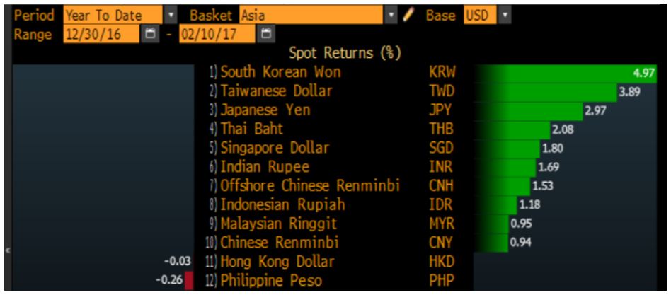 ถ้าเรายังไม่ลืมช่วงปลายปีหลัง “โดนัล ทรัมป์” ชนะเลือกตั้ง เงินดอลลาร์แข็งค่าขึ้นมาถึง 4% โดยเฉลี่ยเมื่อเทียบกับทุกสกุลเงินหลัก (แข็ง 2.4% เมื่อเทียบเงินบาท) แนวโน้มดอลลาร์แข็งแทบจะเป็นกระแสที่เรียกว่า “ไร้แนวต้าน” และนักวิเคราะห์เกือบทุกสำนักชี้ตรงกันว่าการมาของประธานาธิบดีทรัมป์ในปีนี้จะเป็นเหตุการณ์ที่ผลักดันให้เงินดอลลาร์สหรัฐแข็งค่าไปอีก
