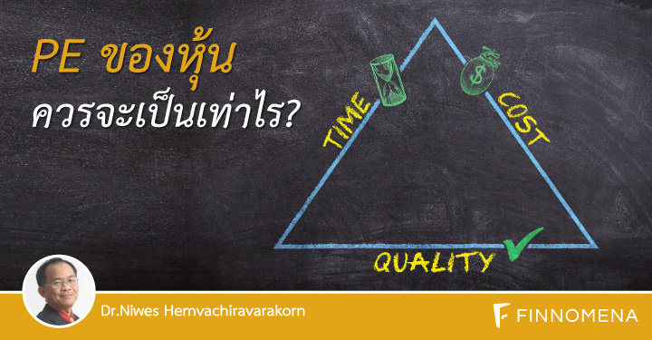 และทั้งหมดนั้นก็คือวิธีคิดว่าค่า PE ของหุ้นควรจะเป็นเท่าไรของผม ซึ่งแทบจะมี “เกณฑ์เดียว” ผมคิดว่าการเปลี่ยนวิธีกำหนดค่า PE ตามสถานการณ์ ซึ่งผมคิดว่ามันคือการเปลี่ยนตาม “ราคาหุ้น” อย่างที่เกิดขึ้นในหมู่นักวิเคราะห์นั้นมีความเสี่ยงสูง เพราะนั่นเท่ากับเรายอมรับว่า ราคาและมูลค่าของหุ้นนั้นค่อนข้างจะสอดคล้องกัน ซึ่งบ่อยครั้งผมคิดว่าไม่จริง และบางครั้งมันห่างกันราวกับ “ฟ้ากับเหว”