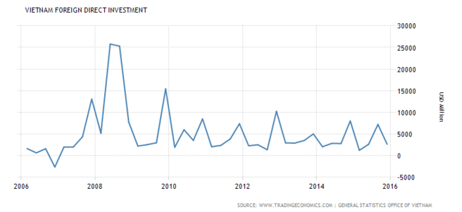 ปัจจัยอีกปัจจัยคือเงินลงทุนโดยตรงจากต่างประเทศ หรือ FDI