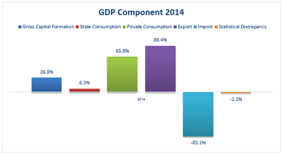 ซึ่ง GDP ของเวียดนามนั้นส่วนที่ขับเคลื่อนเศรษกิจคือ การส่งออก (86.4% ของ GDP รวม) และการบริโภคภาคครัวเรือน (65.8% ของ GDP รวม) ดังรูปด้านล่าง