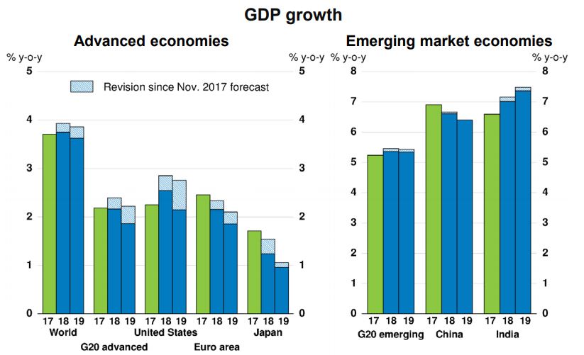 OECD ได้ปรับเพิ่มประมาณการเศรษฐกิจโลกในปี 2560 และ 2561 เป็น 3.9% ซึ่งจัดเป็นการเติบโตในระดับที่ดี ขณะที่เพิ่มประมาณการเศรษฐกิจทั้งสหรัฐฯ ยุโรป และญี่ปุ่นเป็นหลัก และมีการเพิ่มประมาณการเศรษฐกิจของตลาดเกิดใหม่เล็กน้อย ซึ่งเป็นจุดสำคัญที่ทำให้ทาง FINNOMENA Investment Team มีมุมมองว่าภาวะการลงทุนยังคงอยู่ในแนวโน้มขาขึ้น และภาวะการปรับฐานในปัจจุบันนับเป็นโอกาสที่ดีสำหรับการลงทุน (ดูมุมมองรายปี FINNOMENA Outlook 2018 : Playing Extra Time)