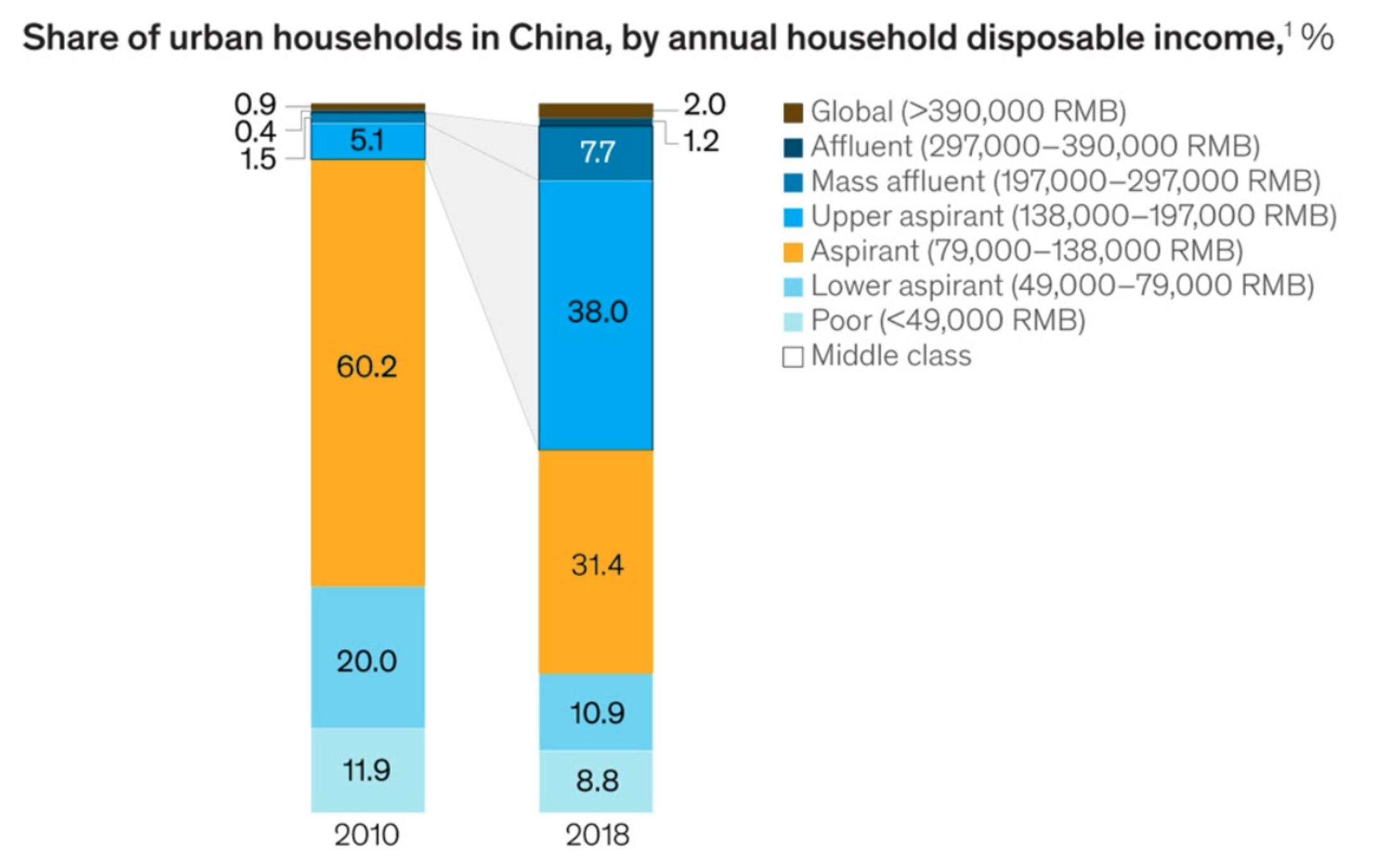 รูปที่ 8 : Share of Urban Households in China, by Household disposable income | Source : Mckinsey Research As of 30/11/2020