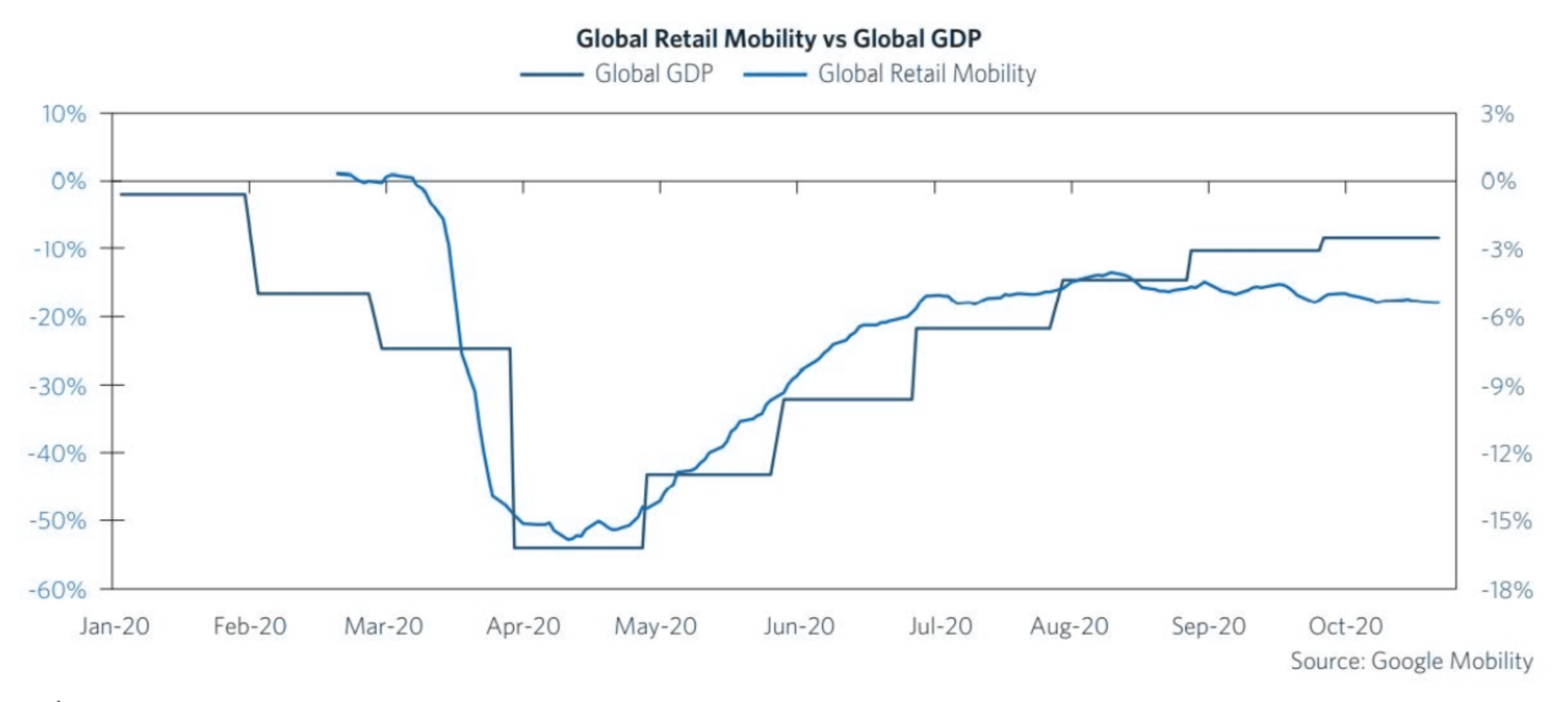 รูปที่ 11 : Global Retail Mobility vs Global GDP | Source : Bridgewater As of 30/11/2020