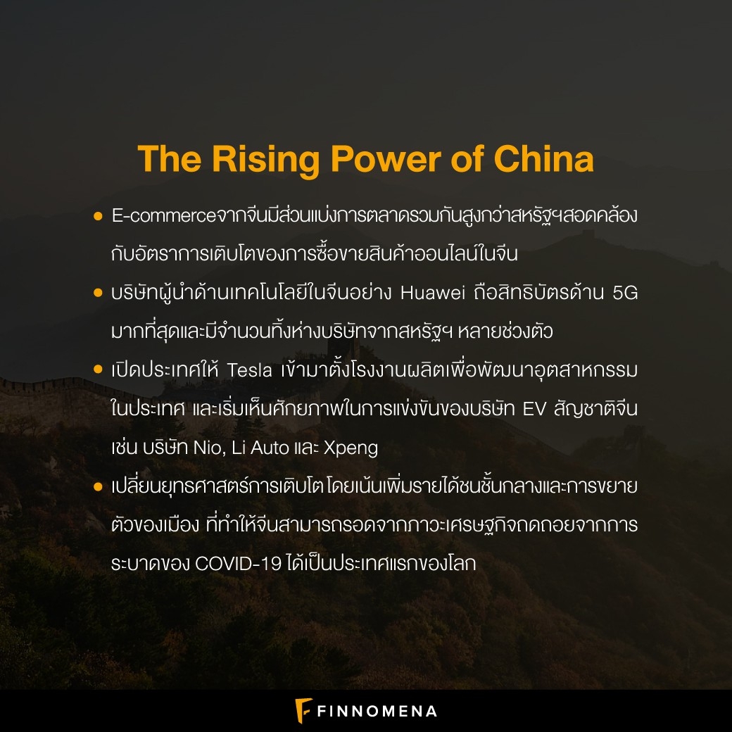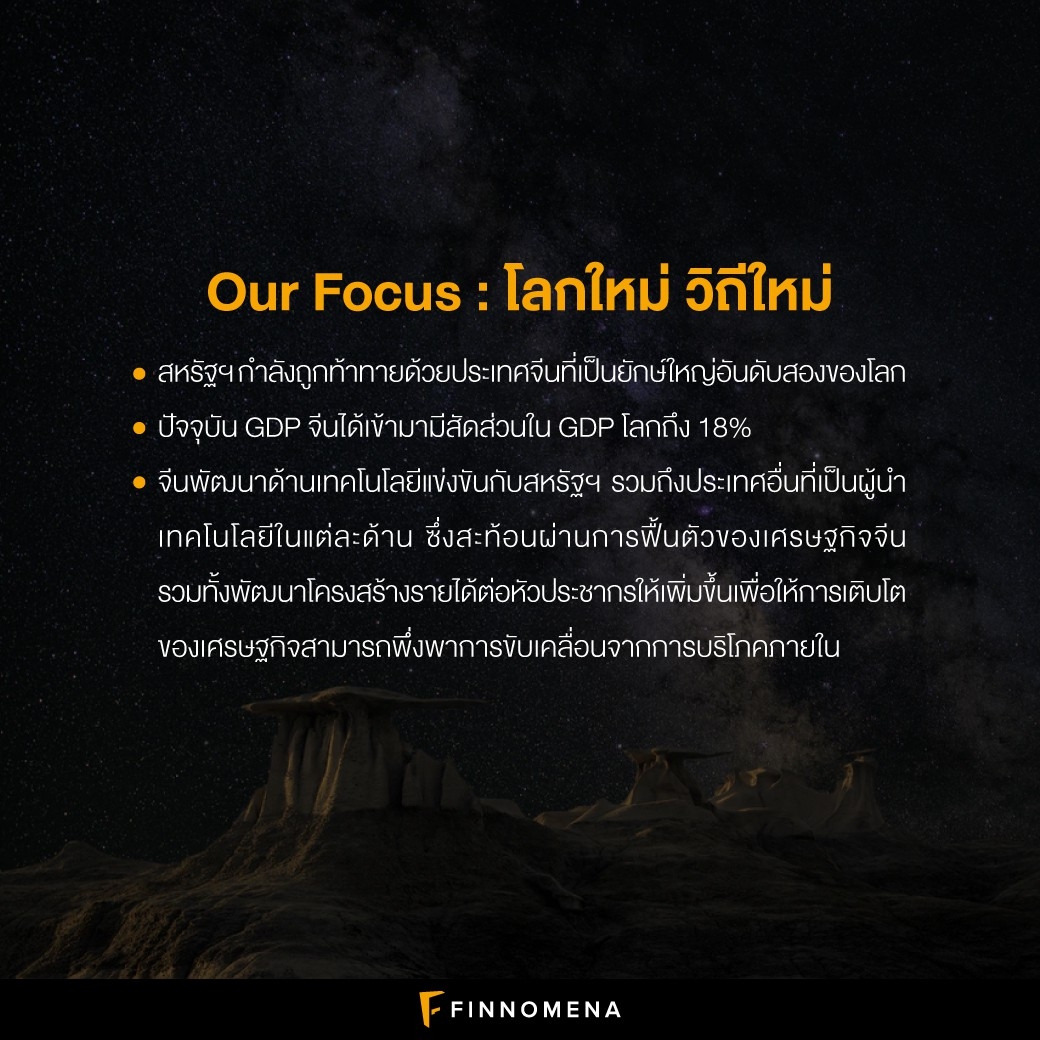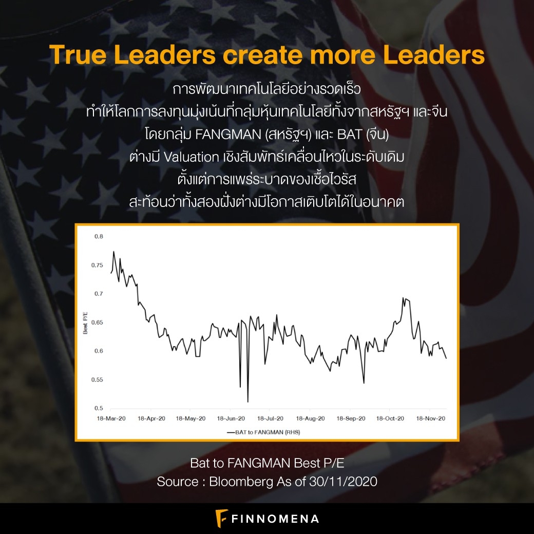 FINNOMENA Investment Team มีความเชื่อว่า มนุษย์เราจะสามารถเรียนรู้ และก้าวผ่านในยามวิกฤติเช่นนี้ได้เหมือนที่เคยเกิดขึ้นในอดีต ทั้งนี้ ในปี 2021 เราจึงยังมีมุมมองเชิงบวกที่เชื่อว่า ปัจจัยแวดล้อมต่างๆจะหนุนทั้งการฟื้นตัวของเศรษฐกิจและตลาดหุ้นต่อเนื่อง บวกกับการเร่งพัฒนาและใช้เทคโนโลยีมากยิ่งขึ้น ซึ่งส่งผลดีต่อการเติบโตของหุ้นกลุ่มเทคโนโลยีทั้งโลก โดยเฉพาะสองมหาอำนาจอย่างสหรัฐฯและจีน