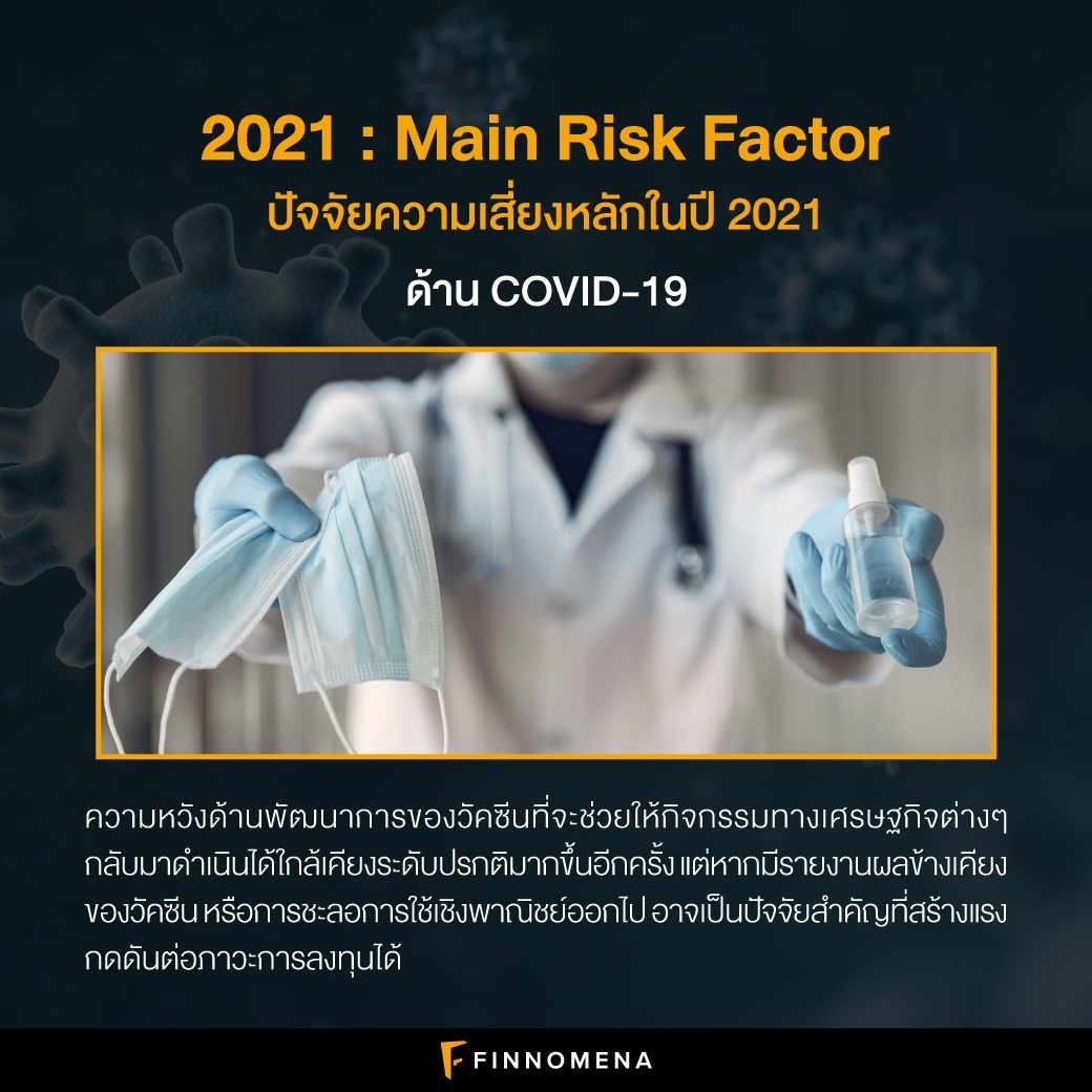 ขณะที่ความเสี่ยงในปี 2021 นั้น หลักๆ มาจาก 2 ด้านหลักๆ ด้วยกันคือความเสี่ยงจากปัจจัยด้าน COVID-19 และความเสี่ยงจากปัจจัยด้านการเมือง