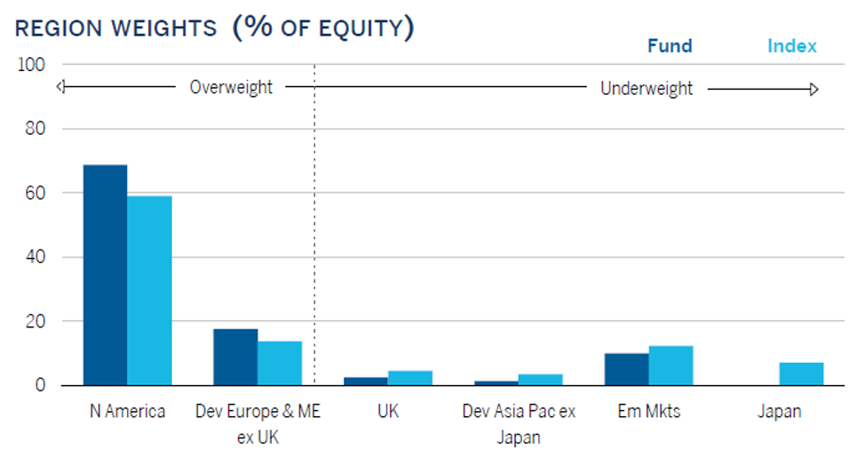 รูปที่ 4 Region weights ของกองทุน Wellington Global Quality Growth Fund I Source : Wellingtonfunds.com As of 24/3/2020