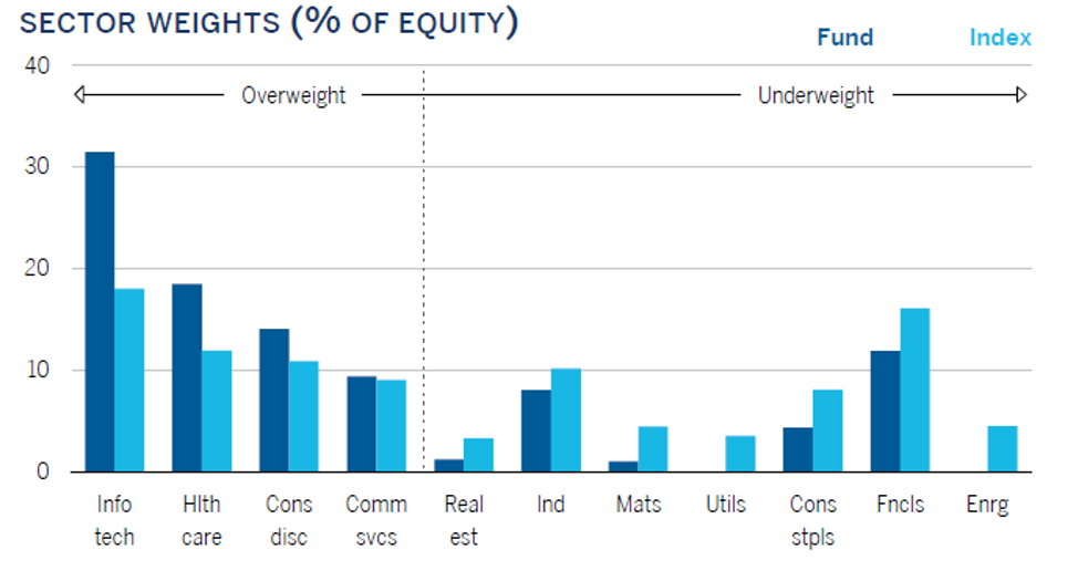 รูปที่ 5 Sector Weights ของกองทุน Wellington Global Quality Growth Fund I Source : Wellingtonfunds.com As of 24/3/2020