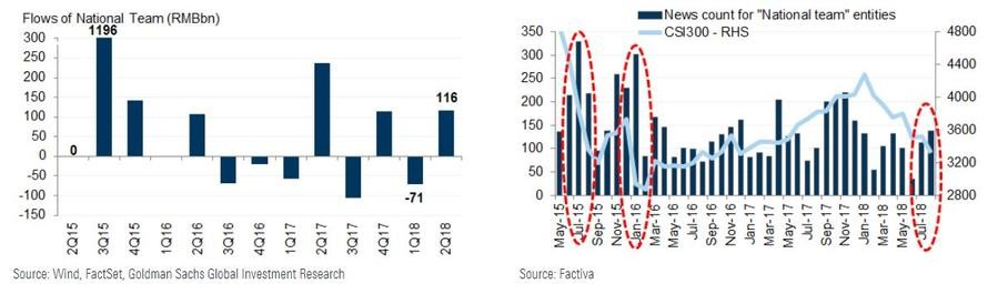 ขณะที่จีนนั้นประสบปัญหาเศรษฐกิจชะลอตัวและสงครามการค้ากดดันอย่างต่อเนื่อง ทำให้ต้องกระตุ้นเศรษฐกิจด้วยมาตรการต่างๆ 1 ในนั้นก็คือ “ทีมชาติ” อันประกอบไปด้วยบริษัทหลักทรัพย์สำคัญขนาดใหญ่ของจีนที่ธนาคารกลางเป็นผู้สนับสนุน เริ่มมีแรงการซื้อหุ้นของจีนกลับมาเป็นบวกสุทธิอีกครั้ง หลังจากตลาดหุ้นจีนปรับตัวลดลงมาอย่างต่อเนื่องนับตั้งแต่ต้นปี โดยมีเป้าหมายเพื่อสร้างผลตอบแทนที่ดี สร้างสภาพคล่อง และลดความผันผวนให้กับตลาดหุ้นของจีน เพื่อ สร้างเสถียรภาพให้ตลาดทุน และ ดึงดูดความสนใจของนักลงทุนสถาบันทั่วโลก