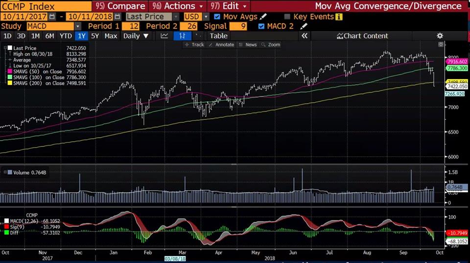 ดัชนี NASDAQ ปรับตัวลดลงกว่า 4% เป็นการลงแรงที่สุดในวันเดียวในรอบ 7 ปีที่ผ่านมา และหลุดเส้นค่าเฉลี่ย 200 วัน ! ขณะที่หุ้นสหรัฐฯ ดัชนี Dow Jones ปรับตัวลดแรงเช่นกัน 836 จุด