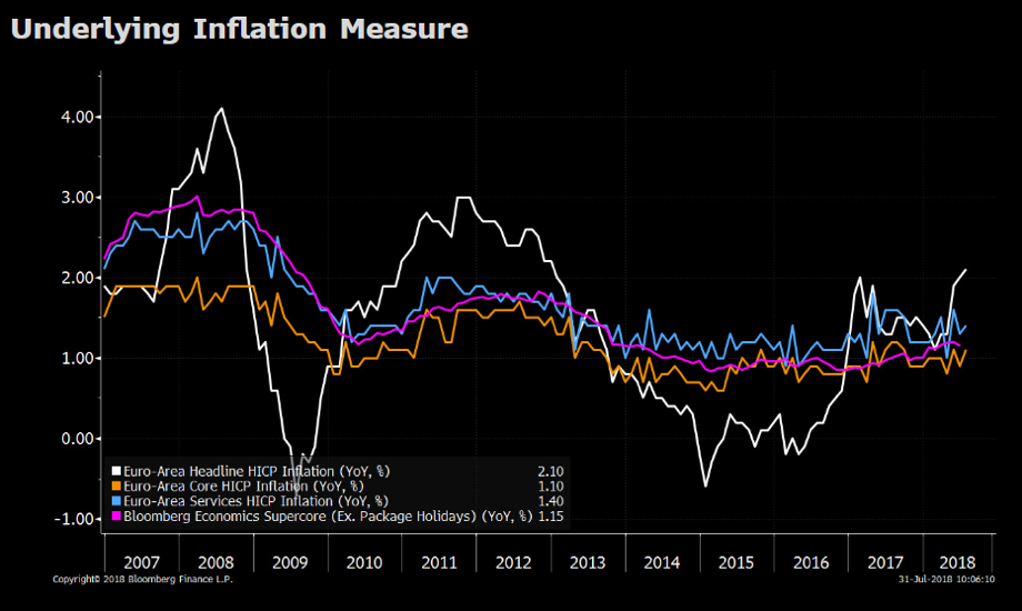 รูปที่ 5 เงินเฟ้อยุโรปทะลุ 2% | ที่มา: Bloomberg (As of 30/7/18)