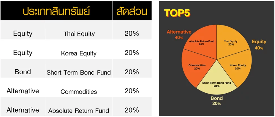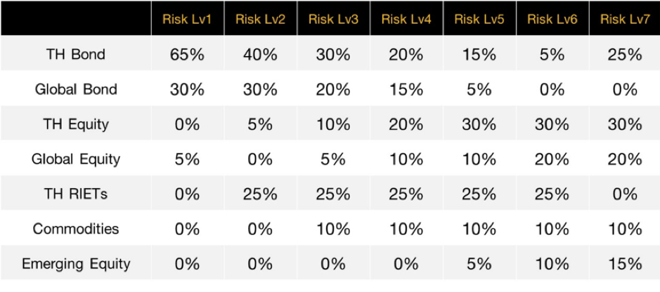 กองทุนที่แนะนำให้เข้าลงทุนได้ตามคำแนะนำในโมเดลพอร์ต: