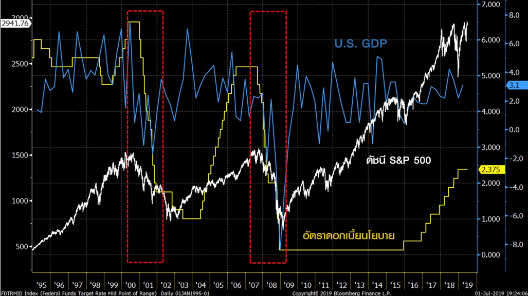 จากการที่ครึ่งปีแรก ตลาดหุ้นปรับตัวขึ้นจากท่าทีผ่อนคลายของสงครามการค้าไม่สอดคล้องกับปัจจัยพื้นฐานทางเศรษฐกิจที่ชะลอตัว ส่งผลต่อภาคการส่งออกและอุตสาหกรรมโดยเฉพาะกลุ่มธุรกิจเทคโนโลยี กดดันให้ธนาคารกลางทั่วโลกต้องมีท่าทีเชิงผ่อนคลายเพื่อกระตุ้นเศรษฐกิจ เช่น การเพิ่มสภาพคล่อง การปรับลดอัตราดอกเบี้ยนโยบาย