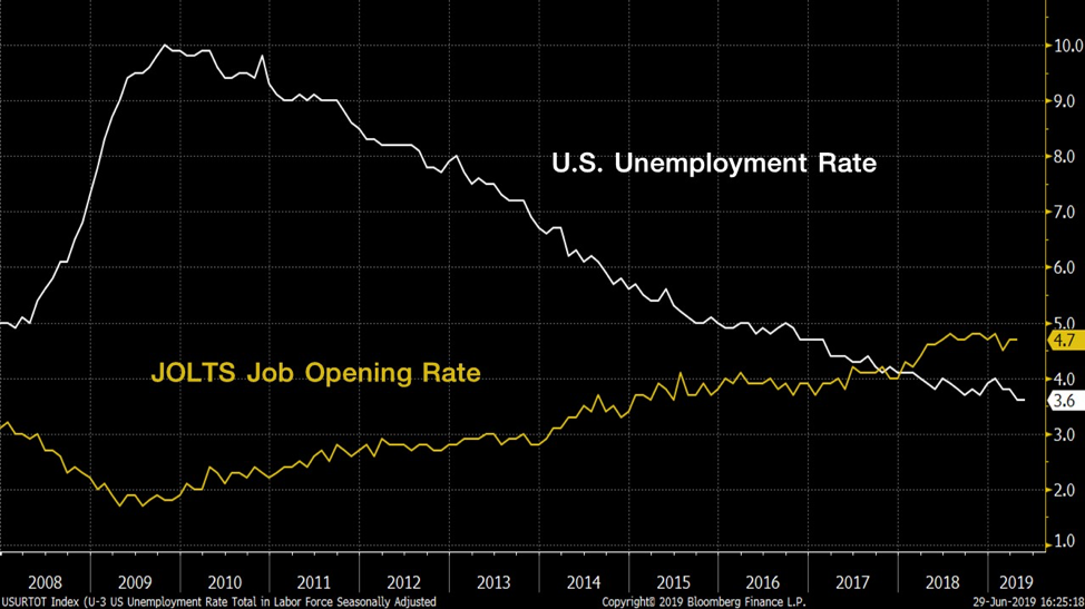 รูปที่ 3 ตัวเลขอัตราการว่างงานและอัตราตำแหน่งเปิดใหม่ l Source : Bloomberg