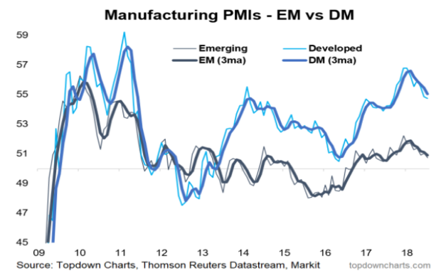 ในไตรมาสที่ผ่านมา ตลาดเกิดใหม่ได้รับผลกระทบจากประเด็นการค้าระหว่างสหรัฐฯ และจีน รวมถึงการปรับขึ้นอัตราดอกเบี้ยของ Fed ได้ส่งผลให้ค่าเงินดอลลาร์ปรับตัวแข็งค่าอย่างมีนัยสำคัญ ซึ่งส่งผลกระทบให้เงินทุนไหลออก และค่าเงินอ่อนค่าอย่างมีนัยสำคัญในตลาดเกิดใหม่ที่มีฐานะทางการเงินไม่แข็งแรง ได้แก่ ประเทศที่มีการขาดดุลบัญชีเดินสะพัด, มีหนี้ต่างประเทศและอัตราเงินเฟ้อในระดับสูงอย่างตุรกี อาร์เจนตินา แอฟริกาใต้ บราซิล