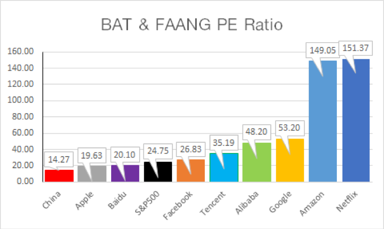 รูปที่ 4. อัตราส่วน P/E ของหุ้นกลุ่มเทคโนโลยีในตลาดสหรัฐฯ และตลาดจีน |ที่มา : FINNOMENA Investment Team (as of 21/8/18)