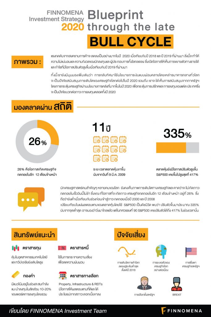 ทั้งนี้เรายังมีมุมมองเพิ่มเติมว่า การกลับทิศมาใช้นโยบายการเงินแบบผ่อนคลายโดยเหล่าธนาคารกลางทั่วโลก จะเป็นปัจจัยสนับสนุนการเติบโตของเศรษฐกิจโลกต่อไปในปี 2020 รวมถึง เราจะได้เห็นการสนับสนุนจากภาครัฐฯ โดยการกระตุ้นเศรษฐกิจผ่านนโยบายการคลังที่มากขึ้นในปี 2020 เพื่อกระตุ้นการบริโภคและการลงทุนของแต่ละประเทศซึ่งจะเป็นปัจจัยบวกต่อภาวะการลงทุนตลอดทั้งปี 2020