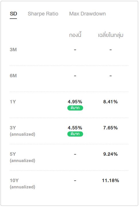 แต่การจะบอกว่ากองทุนนี้ดีหรือไม่ดี ดูเพียงผลตอบแทนย้อนหลัง ก็ยังไม่เพียงพอเท่าไร ส่วนหลักๆ ที่ต้องดูเพิ่มเติมอีก คือ SD, Sharpe Ratio และ Maximum Drawdown