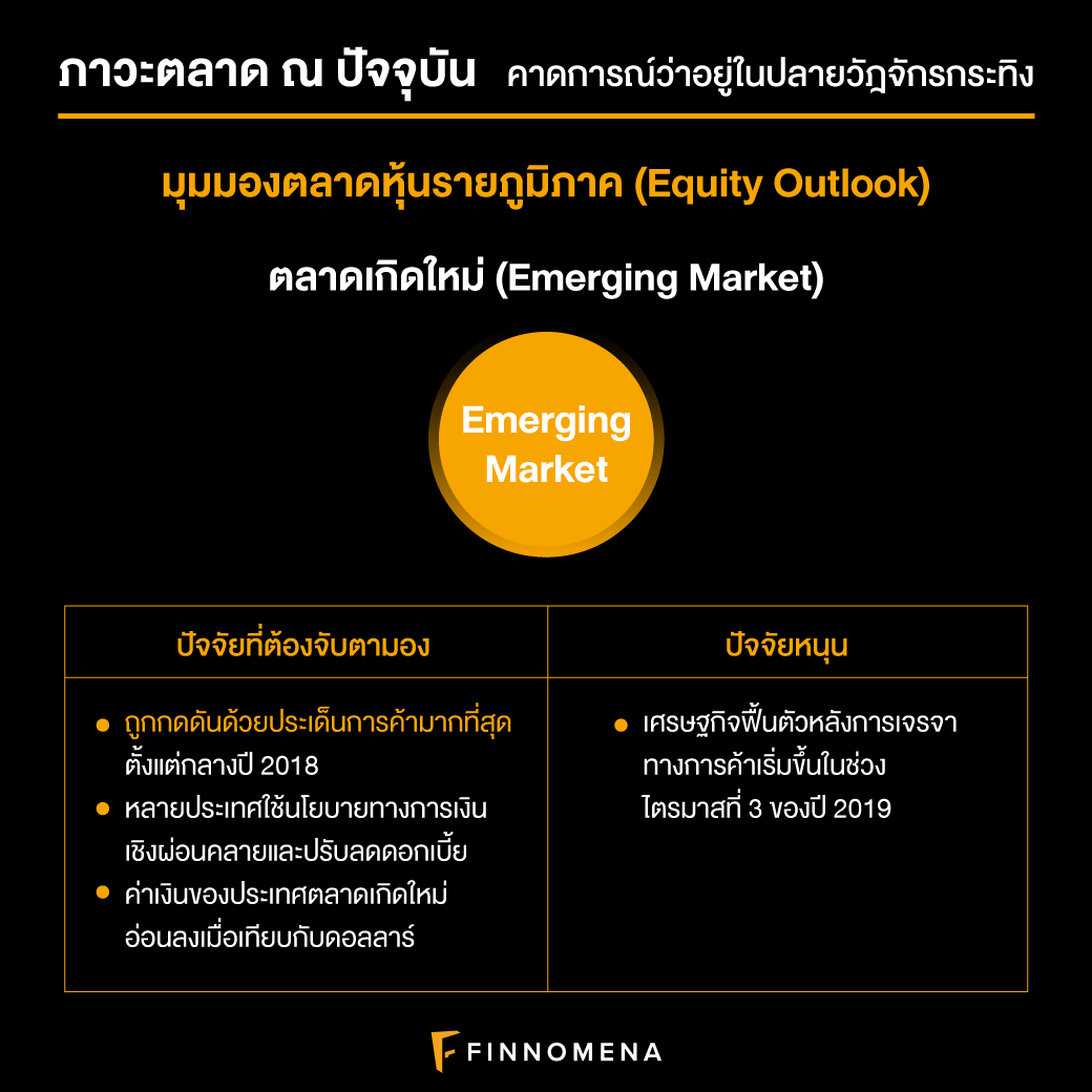 มุมมองต่อกลุ่มประเทศตลาดเกิดใหม่ เรามองว่า เศรษฐกิจภูมิภาคนี้มีการฟื้นตัวอย่างต่อเนื่องนับตั้งแต่การเจรจาการค้าเริ่มขึ้นในช่วงปลายไตรมาสที่ 3 ของปี 2019 โดยเฉพาะภูมิภาคเอเชียยกเว้นญี่ปุ่น (Asia ex Japan) ที่นำโดยกลุ่มบริษัทเทคโนโลยี Semiconductor ซึ่งทั้งประเทศไต้หวันและเกาหลีใต้ต่างเป็นผู้นำอุตสาหกรรม
