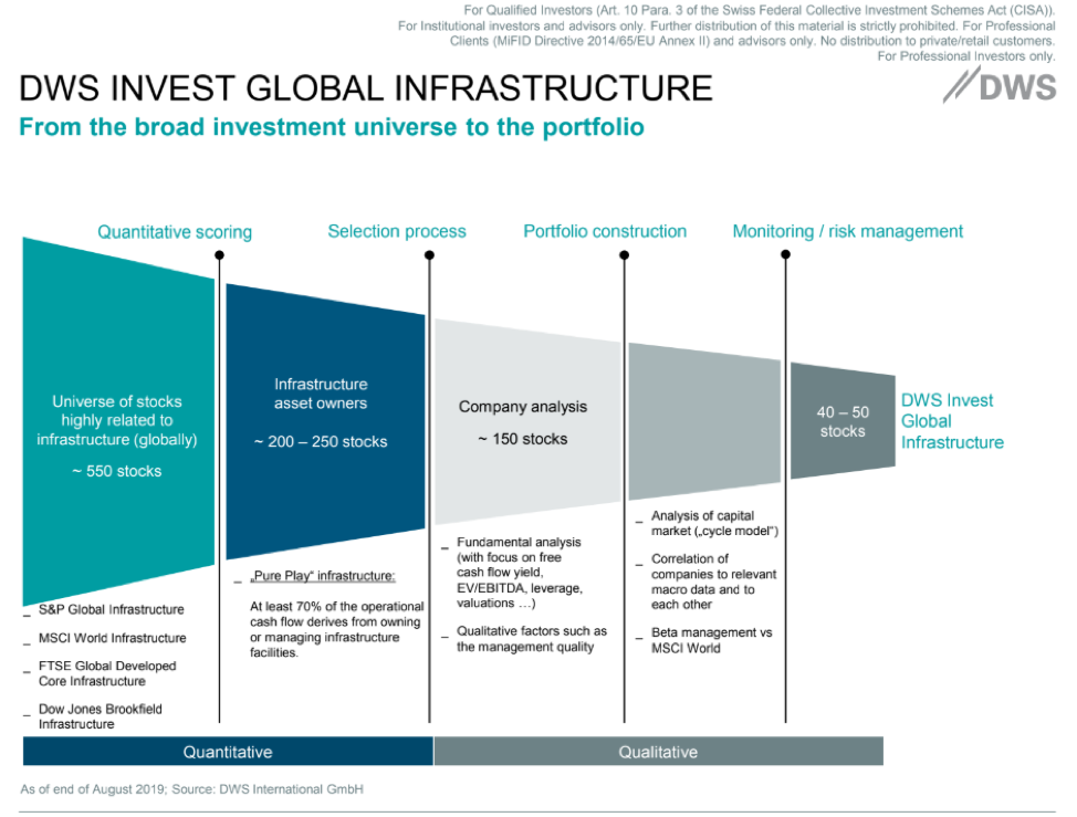 กองทุน DWS Invest Global Infrastructure ใช้การคัดกรองหุ้นแบ่งออกเป็น 2 ส่วนดังนี้
