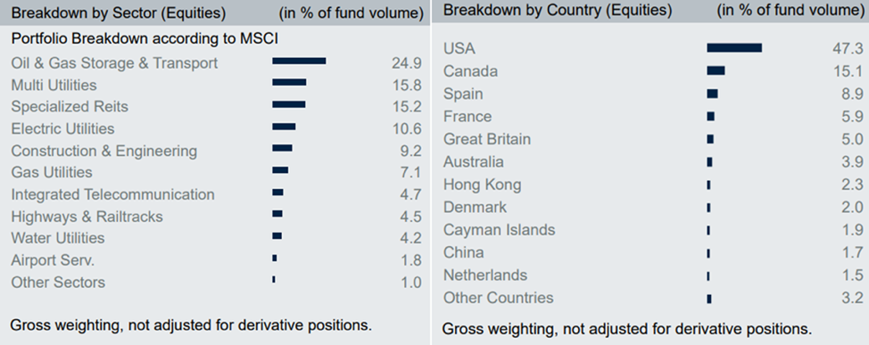 โดยกองทุน DWS Invest Global Infrastructure นั้นมีนโยบายการลงทุนในอุตสาหกรรมโครงสร้างพื้นฐานทั่วโลก เช่น ระบบขนส่ง พลังงาน ระบบน้ำ และการสื่อสาร